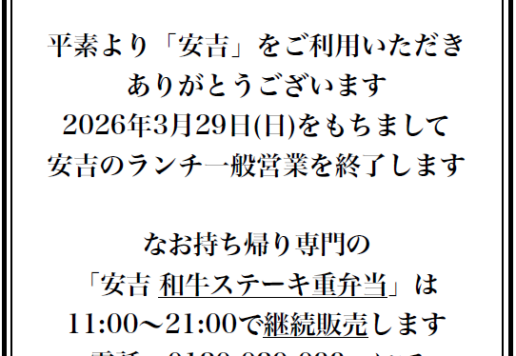 「大安吉日 安吉の日」 全てのお弁当と店内飲食のステーキ重が...